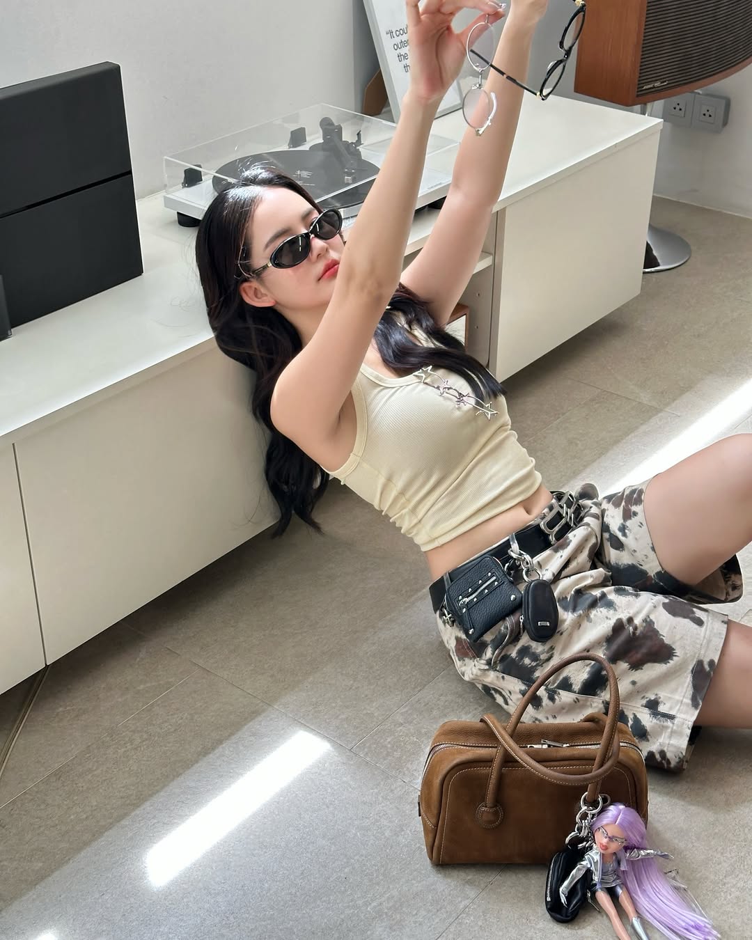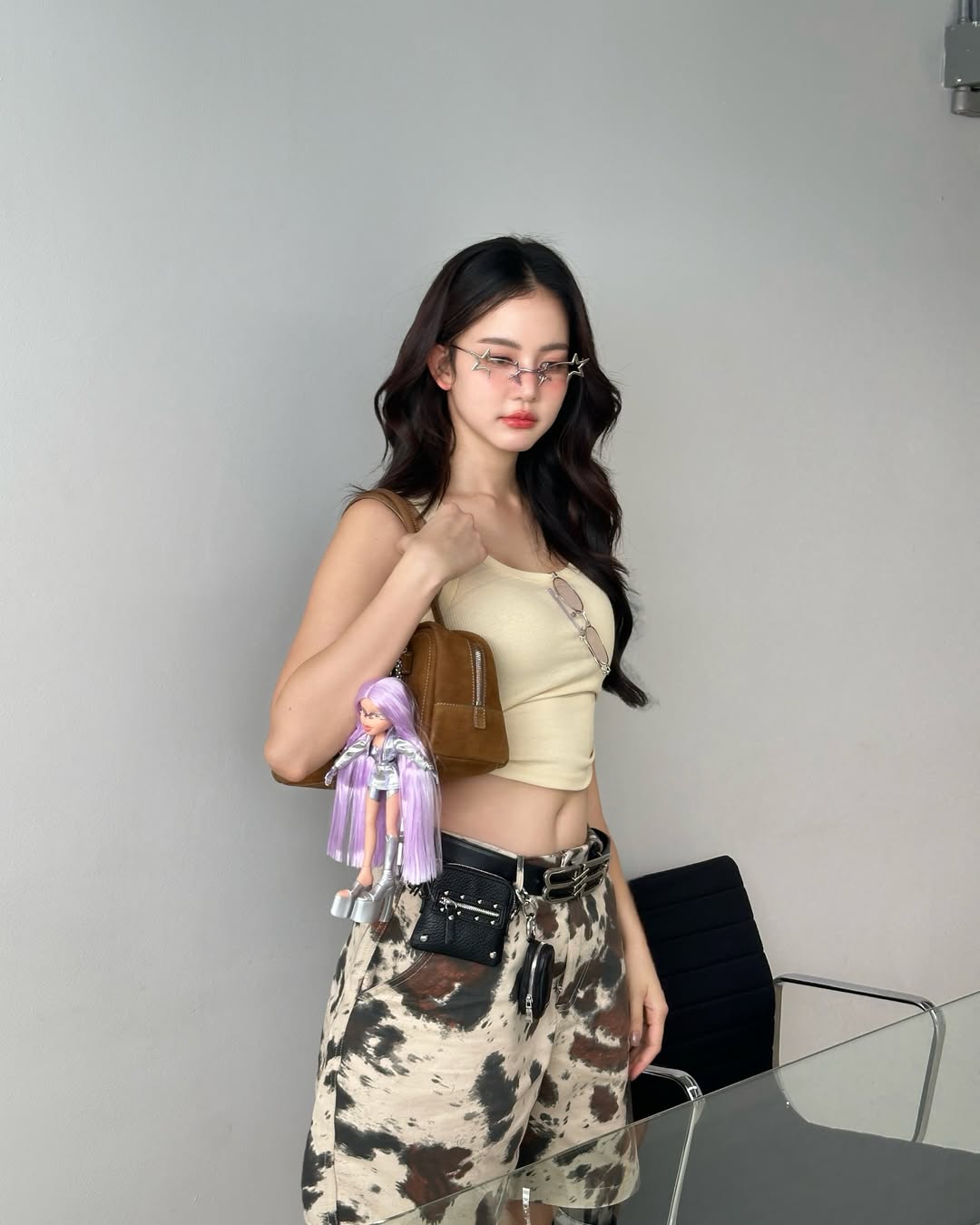นางเอกสาวสุดฮอต “โบว์ เมลดา สุศรี” ปรากฏตัวในลุคใหม่สุดจี๊ด พร้อมแว่นตาดีไซน์แหวกแนวจากแคมเปญ GENTLE MONSTER x BRATZ ที่ผสานความเปรี้ยวและความป๊อปได้อย่างลงตัว ลุคนี้เธอมาในเสื้อครอปสีครีม แมตช์กับกางเกงลายคาโมสุดเท่ พ่วงด้วยกระเป๋าหนังและพวงกุญแจตุ๊กตา Bratz สีม่วงอันเป็นซิกเนเจอร์ของคอลเลกชัน