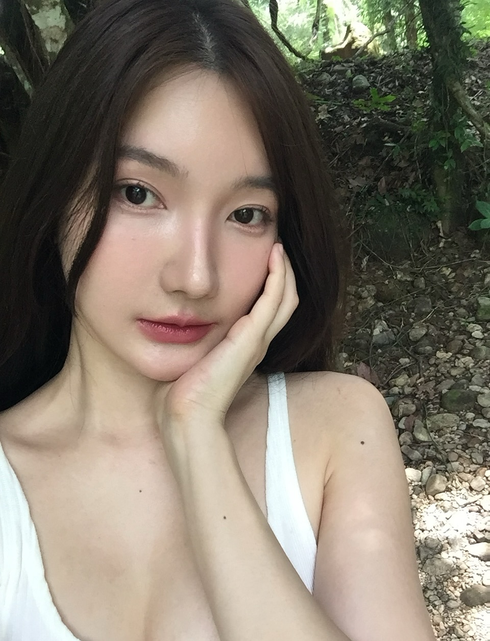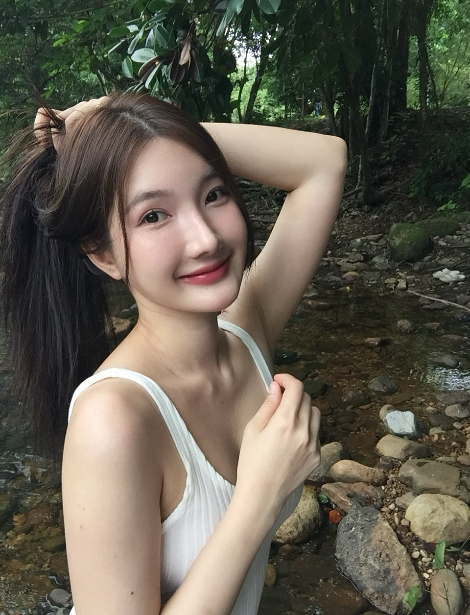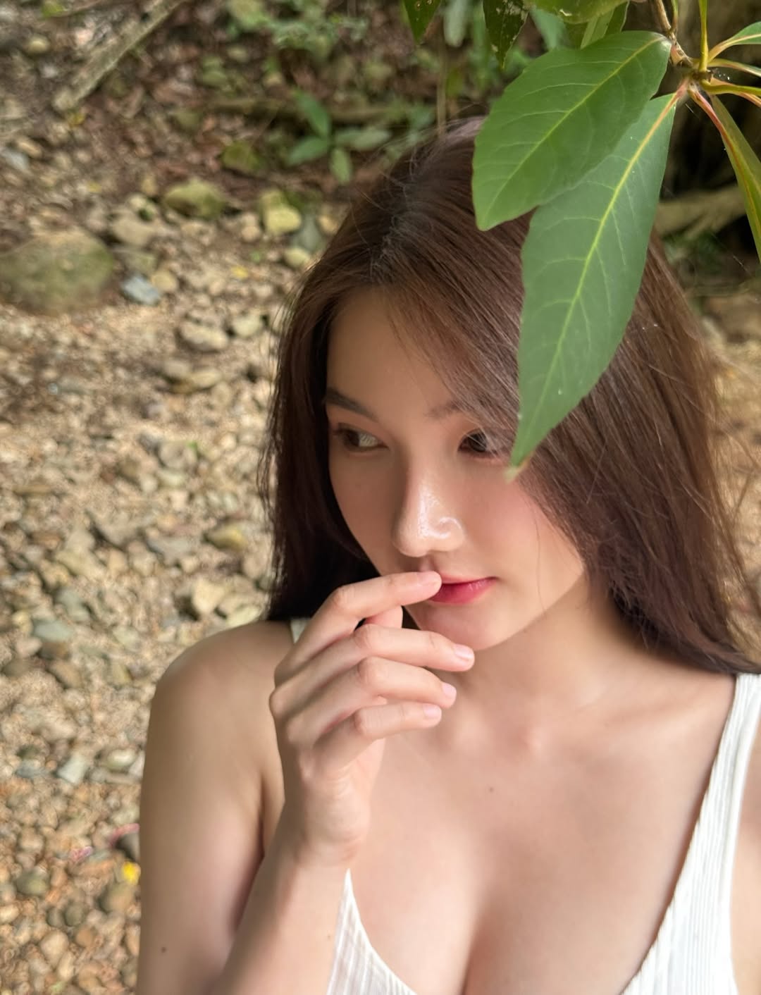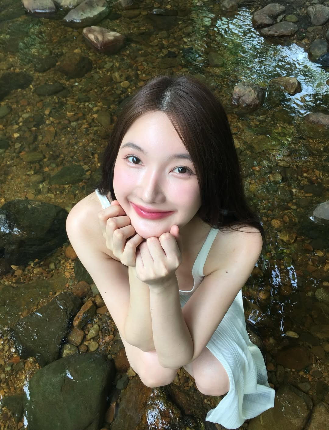 ลุคสาวเรียบง่ายในชุดขาวบางเบา ท่ามกลางบรรยากาศธรรมชาติสีเขียวและสายน้ำใสไหลเย็น โดยในภาพยังเผยรอยยิ้มหวานสุดคูลจนชาวเน็ตพากันกดหัวใจรัวๆ