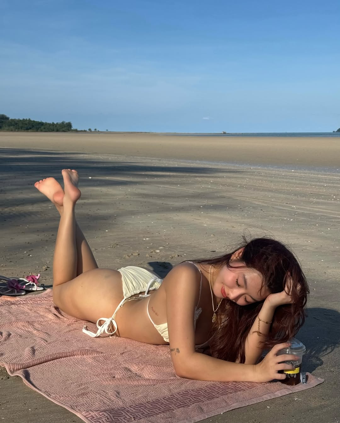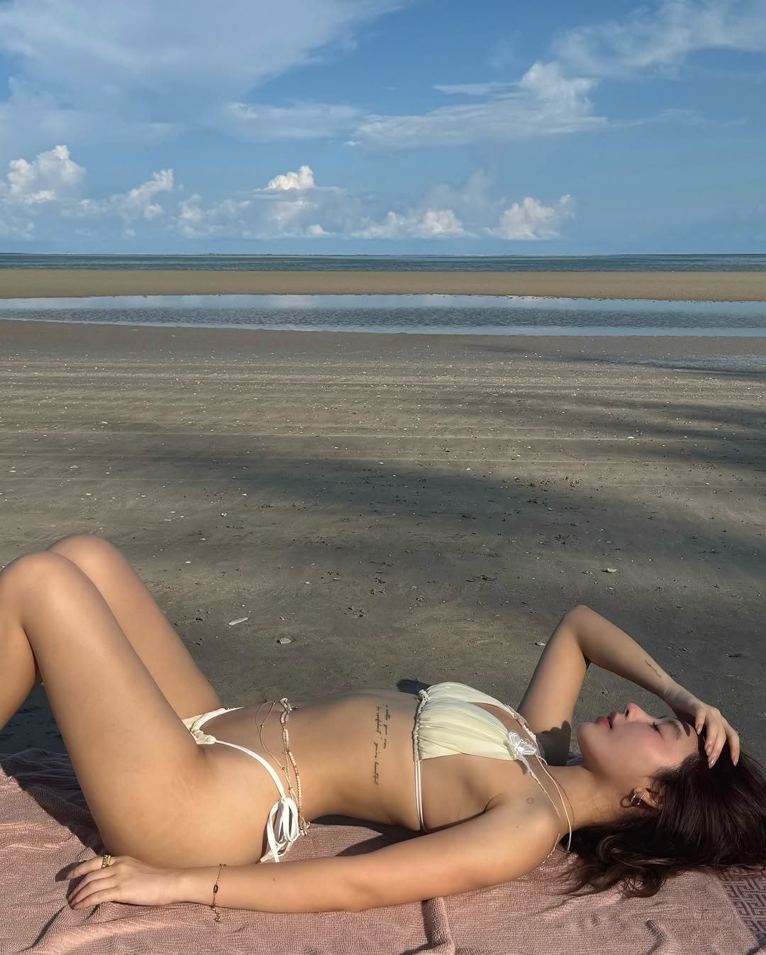 สกุลไม่ทำให้แฟนคลับผิดหวังกับลุคบีชเกิร์ลในสไตล์หวานซ่อนเปรี้ยว ท่ามกลางหาดทรายเนียนละเอียดและแสงแดดยามเช้าที่ชายทะเล เธอเลือกโพสในมุมธรรมชาติ แถมยังแมตช์พร็อพต่างๆ อย่างหมวกปีกกว้าง เสื่อชายหาด และเครื่องดื่มเย็นๆ ได้อย่างลงตัว