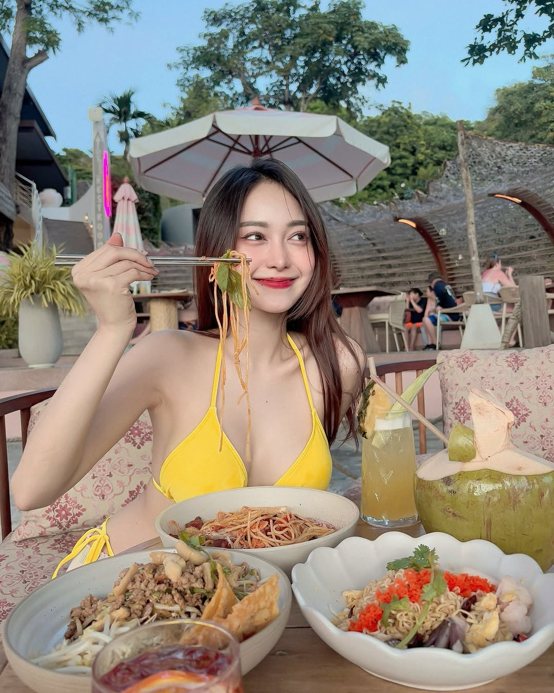 เอื้อยมาในลุคสายชิลรับแดดยามเย็น พร้อมเมนูอาหารจัดเต็มไม่แพ้ความน่ารัก ทั้งส้มตำ ลาบ เส้น และน้ำมะพร้าวสุดสดชื่น แฟนคลับแห่คอมเมนต์กันรัว ๆ ว่า "น่ารัก เซะซี่ สดใสเกินต้าน" เรียกยอดไลก์ทะลุหลักหมื่นในพริบตา